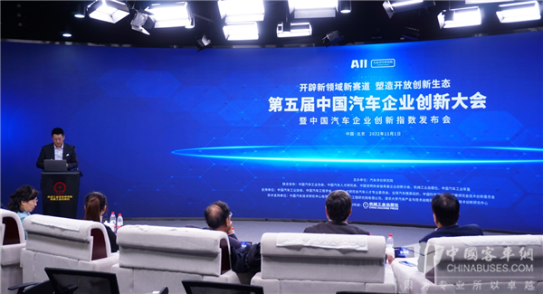 作为汽车行业唯一专门针对创新能力进行讨论评价的大会,第五届中国汽车企业创新大会,以“开辟新领域新赛道,塑造开放创新生态”为主题,对过去一年汽车产业诞生的创新成果和经典案例进行了探讨。会上,宇通集团新能源技术研究院院长李高鹏,就嘉宾普遍关注的新能源和智能网联等话题,向行业分享了宇通坚持自主创新、实现高质量发展的经验。