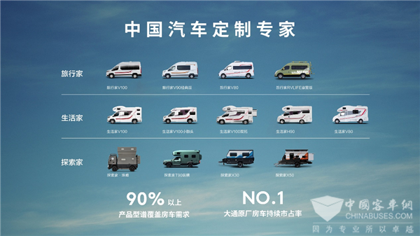 作为国内房车领域的领军品牌,上汽大通MAXUS到目前为止推出了生活家、旅行家与探索家三个系列,打造出多款原厂全品类房车选择,产品型谱覆盖90%以上房车需求,能够满足不同人群对于车型的需求。上汽大通MAXUS首款皮卡房车探索家T90纵横以及生活家V100系列、旅行家V100系列、旅行家RVLIFE露营版等高品质原厂房车,助推品牌原厂房车1-9月位居B型房车细分市场第一,其中,9月单月销量位居第一,市占率高达18%, 1-9月累计销量位居第一,市占率高达15%,宽体轻客B型房车细分市场位居第一,市占率高达21%,用数据说话,用实力持续引领原厂房车市场。