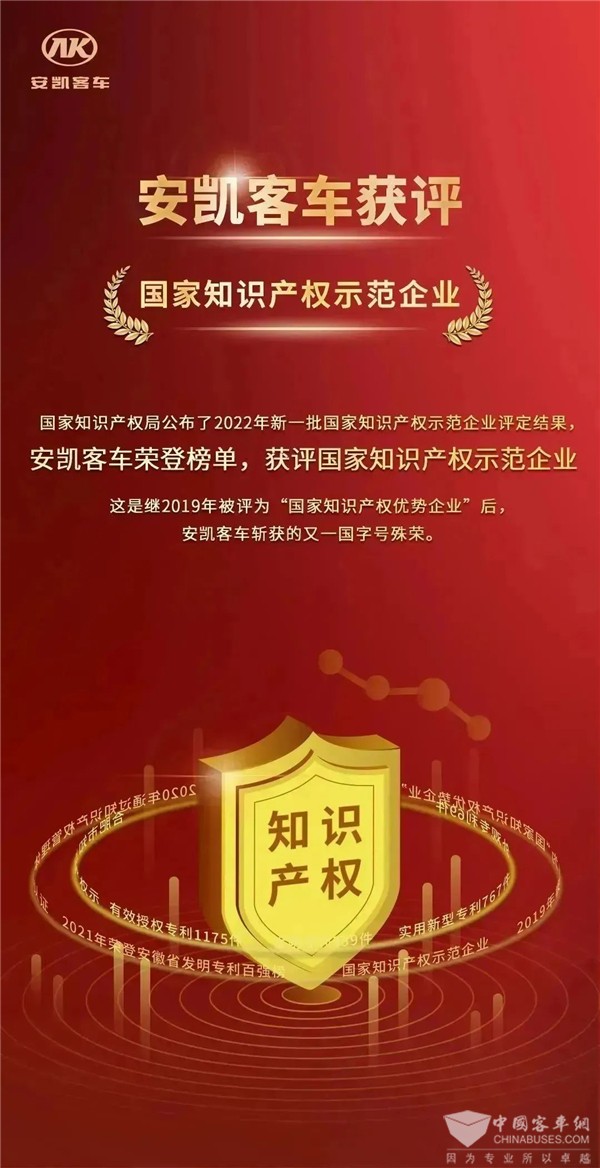 又一国字号殊荣!安凯客车获评国家知识产权示范企业