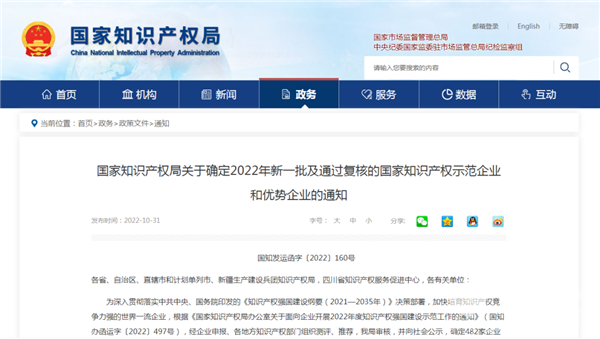“国家知识产权示范企业”由国家知识产权局审批,是国家给予企业知识产权管理工作的最高荣誉和评价,标志着该企业具备知识产权战略管理理念,知识产权创造、运用、保护、管理能力全面发展,知识产权综合竞争优势突出,在行业内具有一定影响力和标杆性示范作用。