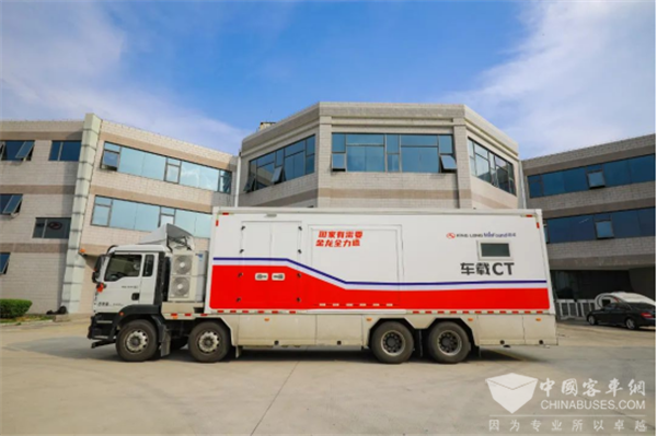 2021年9月30日,金龙客车调配一台移动CT医疗车支援厦门大学附属第一医院,执行抗疫任务。金龙移动CT医疗车秉承全新的移动CT检查理念,整合了半挂车,方舱及CT,一体化设计,解决了方舱CT移动性能较差的劣势,又很好的避免了重卡型车载CT购买及维护成本高的问题,承担着患者转移、救援和保护医务人员生命健康的重要责任,被称为“移动的医院”。