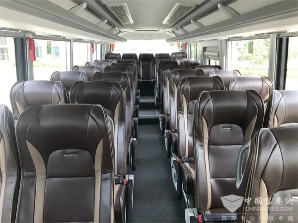 整车采用轿车化仪表台设计,内饰空间划分更人性化。双“M”设计理念,实现外部空间最小化、车内空间最大化,致力打造出一款用户好开、好用、好赚钱的客车产品,满足不同客户对豪华与舒适度的要求,将持续引领中国高端客车发展新趋势。