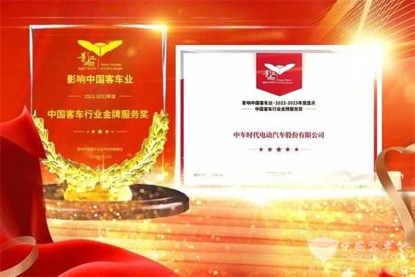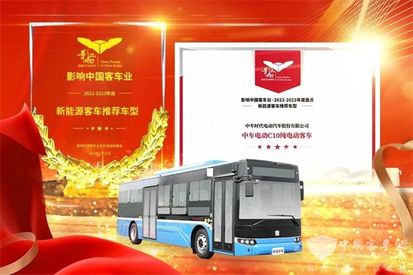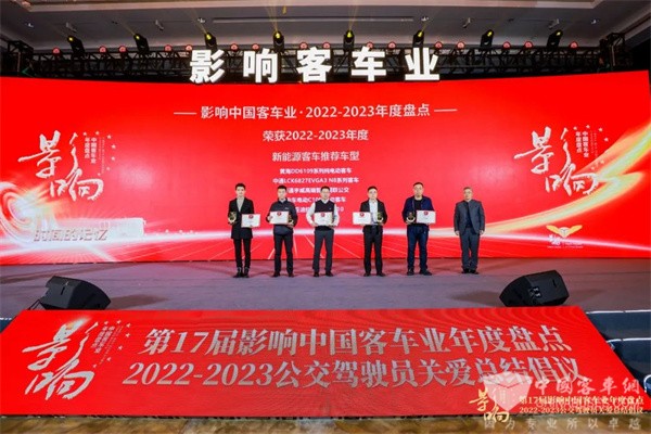 2023年2月22日,第17届影响客车业年度盘点颁奖典礼在南京隆重开幕。经过网络投票和专家评委评审,中车电动摘得2022-2023年度“中国客车行业金牌服务奖”,中车电动C10荣获“新能源客车推荐车型”。