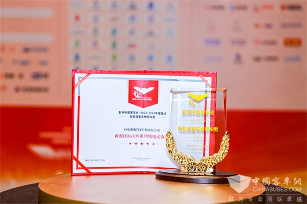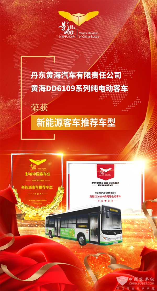 2023年2月22日,“第17届影响客车业年度盘点活动”颁奖盛典在古都南京圆满收官。经过专家评定、客户投票、网络评议等多个环节,黄海客车DD6109EV纯电动客车系列产品凭借其成熟的技术、可靠的性能及扎实的市场表现从主从参评产品中脱颖而出,荣膺2022-2023年度“新能源客车推荐车型”。