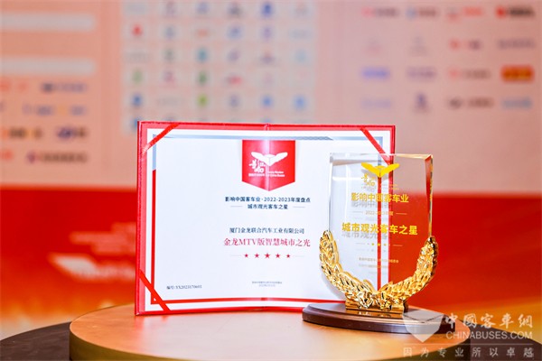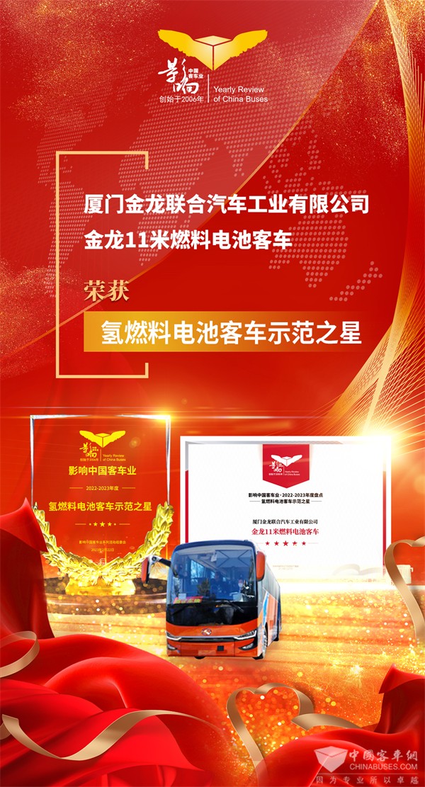 2023年2月22日,第17届影响客车业年度盘点活动在颁奖典礼在南京盛大启幕。行业专家、学会代表、客车企业、公交客运及技术配套专家代表等齐聚一堂,共同见证了这一行业盛典。当晚,影响客车业年度盘点评选结果正式出炉,金龙客车一举斩获2022-2023年度“城市观光客车之星”和“氢燃料电池客车示范之星”两项殊荣,用技术和实力影响中国客车业。