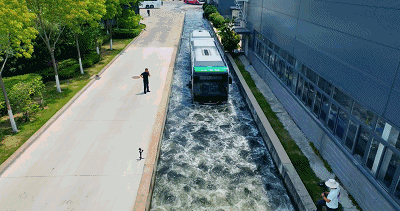 出厂之前,不等暴雨来检验,宇通客车早已乘风破浪无数次。出厂前的一次次涉水试验,一次次真实模拟自然降雨环境,都是为了确保车辆的涉水通过性,零部件涉水的可靠性,以及客车的防御密封性能。