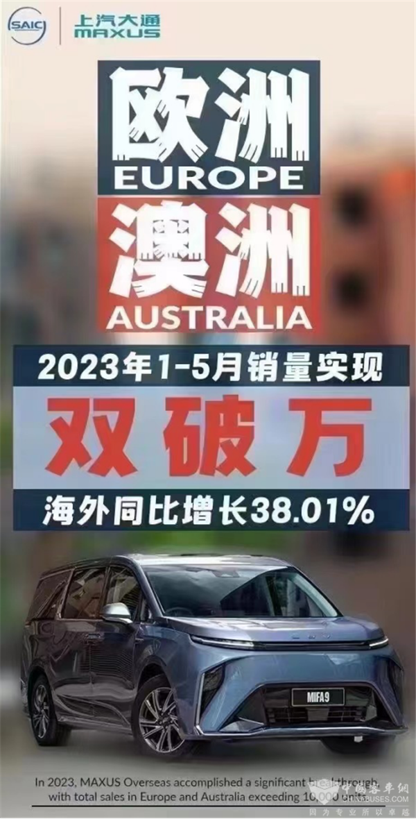【上汽大通MAXUS 1-5月欧洲、澳洲累计销量双破万】
