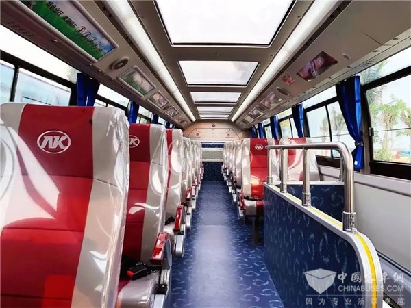 安凯双层观光巴士不仅拥有“高颜值”,还有丰富的“内涵”。为了给乘客提供更加便捷、舒适的乘车观光体验,车内配备高档软座椅,设有USB充电插口,满足移动设备的充电需求。导乘及宣传屏幕采用了LCD彩色屏,设置标准和展示效果均达到高铁水平。