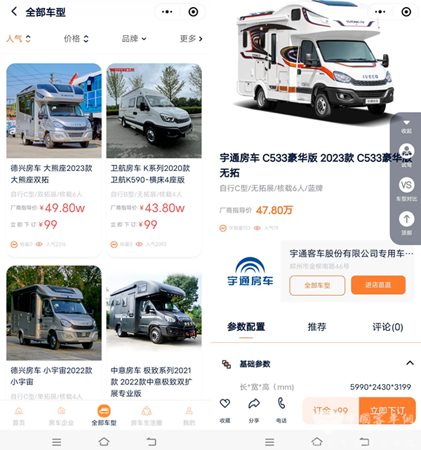 依家房车小程序2.0版本提供超专业的房车服务商,你可以按照人气和销量筛选,挑选最适合自己的房车。相信有了依维柯底盘改装的房车陪伴,房车家族的车友们一定可以快乐出发,收获最美的风景。
