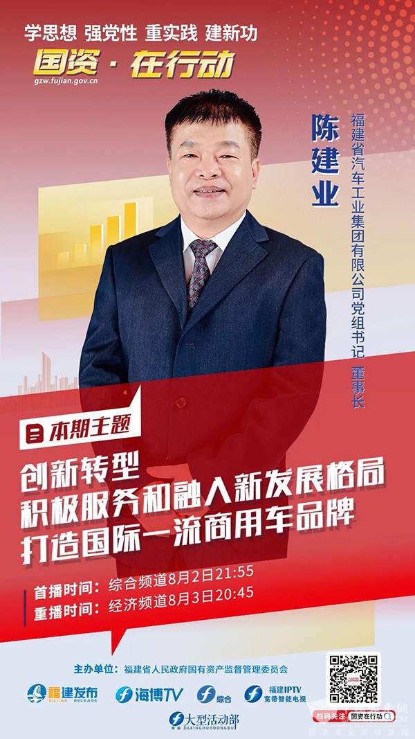 本期节目邀请到了福建省汽车工业集团有限公司党组书记、董事长陈建业做客演播厅,采用“云连线”,与来自福建省各整车企业、汽车零部件企业、商用车客户等代表,以及热心观众,共话福汽集团创新转型高质量发展之路。