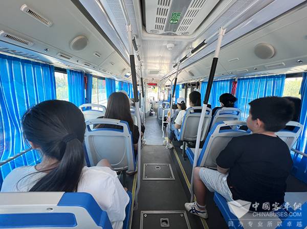 当车辆起步,氢能的优势体现得淋漓尽致。每次车辆进站停靠、起步,我们都可以感受这款氢能公交车快速的起步和平稳的加速,整个过程没有任何卡顿、顿挫,非常平顺,也让乘客的乘坐体验非常愉悦。车辆采用无级变速器,换挡非常平稳,几乎感觉不到变速的过程,不容易晕车,老少乘坐都舒心。