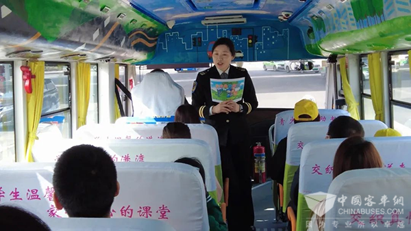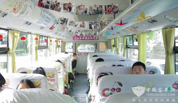 在打造校车服务特色上,温馨校车在全国首创以“主题车厢——流动课堂——书香校车”为主线的校车品牌文化,独特的卡通车座贴、车辆主副版和车厢装饰让每一辆校车都有自己的文化主题。同时,以校车为载体,结合节日节点、传统文化等,在车厢内开展“流动课堂”,打造教育实践新平台。通过这些方式,让普通的校车车厢化身为孩子们的第二课堂和青少年教育的课外基地。
