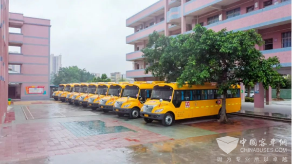 守护孩子上学路!宇通校车批量投运江门开平市,为开平市24所学校的3700多名学生的上下学路保驾护航。