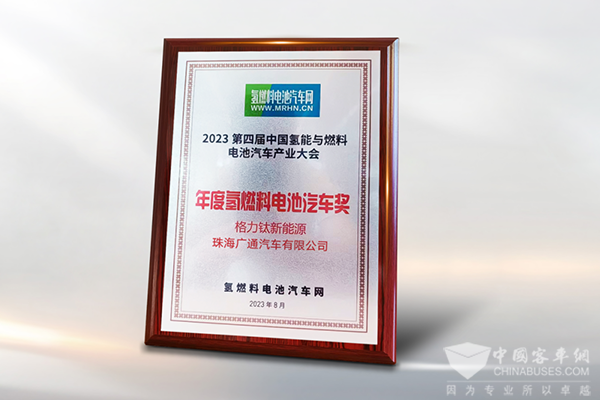 格力钛氢燃料电池客车凭借过硬品质和创新技术,在众多氢能装备中脱颖而出,荣获“2023年度氢燃料电池汽车奖”。