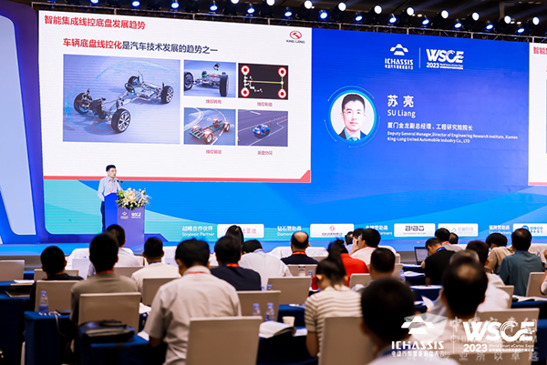 “2023电动汽车智能底盘大会”上,厦门金龙副总经理、工程院院长苏亮以“智能集成底盘技术研究”为主题发表演讲,介绍并分享了目前智能集成线控底盘发展趋势以及金龙在智能底盘领域取得的最新技术成果。