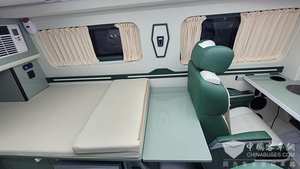 齐星星领的商务座椅可实现四向调节,带有按摩、加热、通风功能,长途旅行舒适性更高,可拆卸式的小桌台上面置有800W的电磁炉,日常车内可进行轻油烟的简餐烹饪。