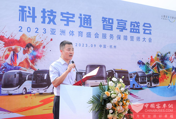 宇通客车闽浙服务分公司经理周海鹏在誓师大会现场表示:“为了圆满完成圆满完成2023亚洲体育盛会的服务保障工作,我们从6月就开始进行服务保障方案的策划,并持续执行和完善,竭尽所能为乘客提供更舒适、更高效、更环保、更安全的出行体验,铸就客户最佳服务体验,谱写国际盛会服务保障新画卷。”
