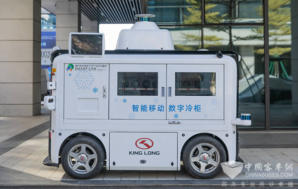 金龙智能移动数字冷柜车具备L4级自动驾驶能力,可在示范区内规划定点停车、固定路线巡航和预约停车等,高效提供商品售卖和广告投放服务,有效提升数字小镇游客的科技体验和便民服务需求,游客和上班族可通过高清触摸屏选购商品,进行微信、支付宝支付,快速完成商品的购买体验,感受“移动新零售”带来的便捷与时尚。