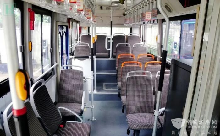 安凯纯电动G9不仅在节能减排方面表现出色,而且还是一款大气美观的经典公交车型。为呼应竹林风光,此处的安凯纯电动G9涂装均以蓝色为主基调,配以水墨风格的乡村剪影图案,更有江南水乡的恬静韵味。车内采用低地板、大通道设计,上下车更方便,乘坐空间也变得宽敞通透。