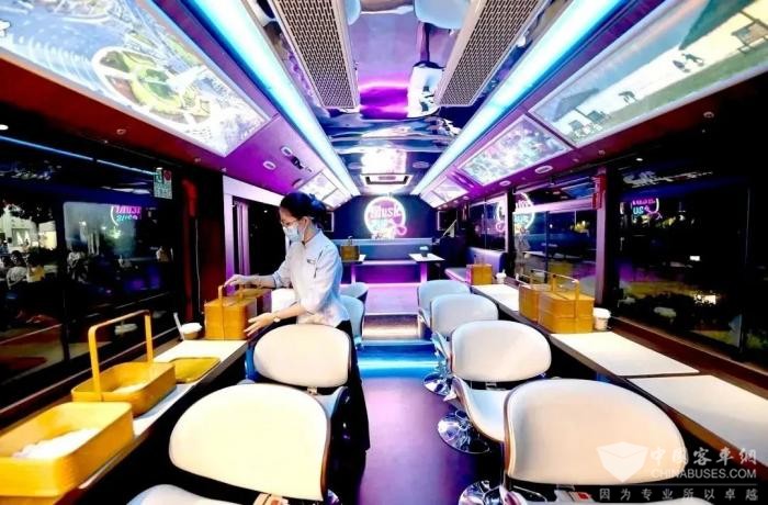通过音乐、美食、旅游的深度融合,安凯G9摇身一变,成为奇妙的“音乐茶座”。整个巴士以简约时尚的“赛博朋克”风格为主,车内墙壁以复古原木为主搭配黑胶唱片装饰,还设有本土驻车歌手,带乘客沉浸式体验可移动的KTV,提升了城市公交的时尚度和影响力。
