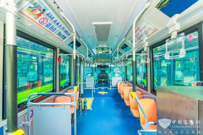 车身外观设计紧贴南沙城市特色,海格蔚蓝纯电动整车线条动感流畅,大V前脸造型,侧围黄金比例分割,视觉冲击力强,设计语言立体饱满,塑造鲜明公交风景线。走进车内,可以看见处处贴心、人性化关怀设计。一级踏步、平地板大通道便于乘客上下车。整车空间宽敞舒适,宽大侧窗,明亮温馨色彩搭配,乘坐环境清新宜人,舒适惬意。还有车外盲区警报提醒、车内医药箱包应急、前后车门紧急按钮等各种细节考虑。在驾驶员关怀上,海格蔚蓝采用环绕式驾驶舱,配有超大的中控屏操作灵敏、显示清晰,各种按键方便,给驾驶员带来更好的独立性、舒适性和便捷性。为营造舒适美好公交出行,海格蔚蓝纯电动量身定制,充分把握用户需求,处处落到细节处,提交了一份完美的答卷。
