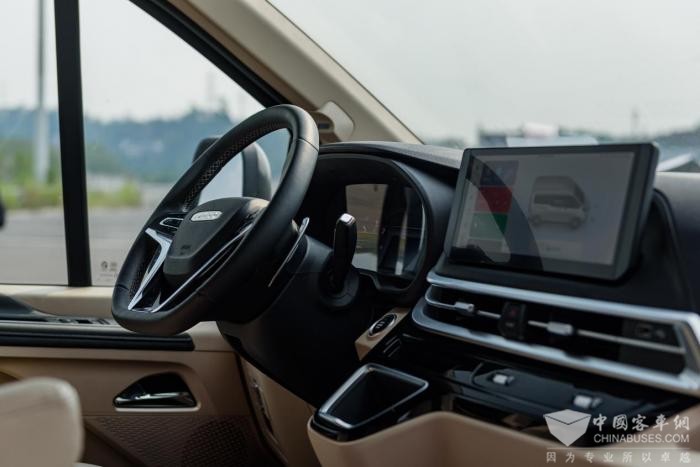 为了让用户感受到每一次出行亦是享受,聚星客车的12.3寸高清触控大屏,搭载第3代IVECONNECT智能交互系统,集成腾讯TAI、车载微信、智能导航、可生长模式(FOTA远程迭代升级)等功能,支持语音交互,行车时带来不一样的娱乐性和互动性;四幅式多功能方向盘两侧功能区集成了智能巡航、AI唤醒、频道切换、蓝牙电话、音量调节等诸多智驾功能。