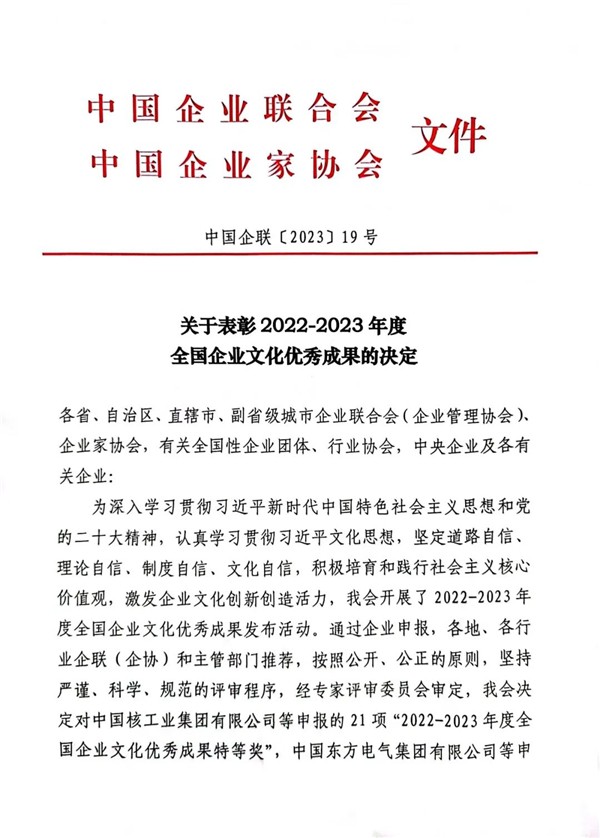 2023年12月15日至16日,全国企业文化年会(2023)在四川省宜宾市召开。会上举行了“2022-2023全国企业文化优秀成果”发布颁奖仪式。会议对2022—2023年度全国企业文化优秀成果进行了表彰,中车电动《以“精品”文化助推企业走向卓越的质量文化建设》研究成果,荣获2022-2023年度全国企业文化优秀成果一等奖。