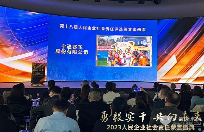 2023年12月21日,由人民日报社指导、人民网主办的2023人民企业社会责任荣誉盛典暨第18届人民企业社会责任奖颁奖活动在京举行。宇通客车凭借着社会责任践行成果以及在儿童交通安全领域的突出实践荣膺“第十八届人民企业社会责任奖——筑梦未来奖”,成为客车领域唯一获此殊荣的企业。