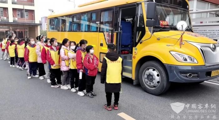 一辆辆载满学童的校车驶入校园,切实守护着当地学生的出行安全,解决了家长每日多次接送烦恼,更有效化解校区周边交通拥堵问题,真正做到了让学校省心、家长放心、孩子舒心的多方满意成果。