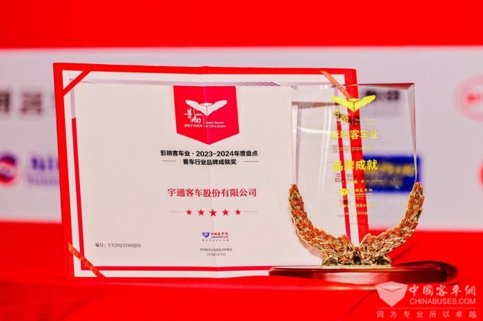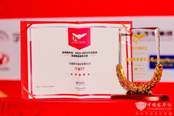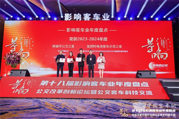 2024年1月19日,第十八届影响客车业年度盘活动在安徽合肥举行。活动当晚,影响客车业年度盘活动评选结果正式揭晓,宇通客车一举斩获2023-2024年度“中国客车行业品牌成就奖”、“高端商务客车之星”和“微循环公交之星”三项大奖,凭借着过硬的产品力和品牌影响力领跑客车行业。