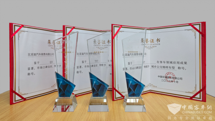 客车卡车等多款产品获奖:中国交通报举办的第三届中国运输服务榜样车型推选发布会上,比亚迪T5D获城市配送车榜样车型奖、Q3获得甩挂运输车榜样车型奖、K7获城乡公交榜样车型奖。