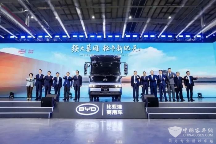 首款混动轻卡T5新品发布会:比亚迪首款搭载DM技术的4.5吨级城市物流轻卡T5与全新淮安卡车智慧工厂一同亮相,为交通运输发展贡献绿色方案。