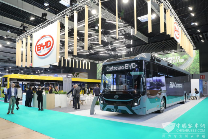 纯电动巴士亮相UITP全球公共交通峰会:全新纯电动巴士B19和首款12米纯电动巴士BYD-Castrosua亮相2023 UITP全球公共交通峰会。