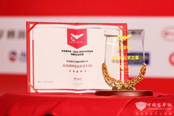 2024年1月19日,第十八届影响中国客车业年度盘点颁奖典礼在安徽合肥举行。比亚迪商用车成功蝉联“中国客车行业品牌成就奖”,在产品端,比亚迪纯电动公交车B8荣获2023-2024年度“微循环公交之星”,纯电动公交车B10获评“新能源客车推荐车型”,表现出超强产品力及品牌影响力的同时,为商用车行业高质量发展注入澎湃动能。