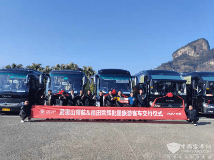 在风景秀丽的武夷山山脚下,福田欧辉多款旅游客车批量交付武夷山领航,以领先的技术、卓越的产品实力、全天候服务保障,积极助推景区客运质量。同时,也为武夷山旅游资源区、南平市以及整个福建省的绿色转型发展注入全新动力。此次批量交付的车型涵盖8米至13米高端旅游产品品类,包含BJ6132、BJ6122、BJ6906以及BJ6816四大产品系列,全方位满足多场景旅游客运需求。其中BJ6816系列纯电动旅游客车,代表了欧辉在新能源客车领域的雄厚技术实力,为闽山闽水的生态保护厚植基底,为生态旅游的发展注入绿色动力。