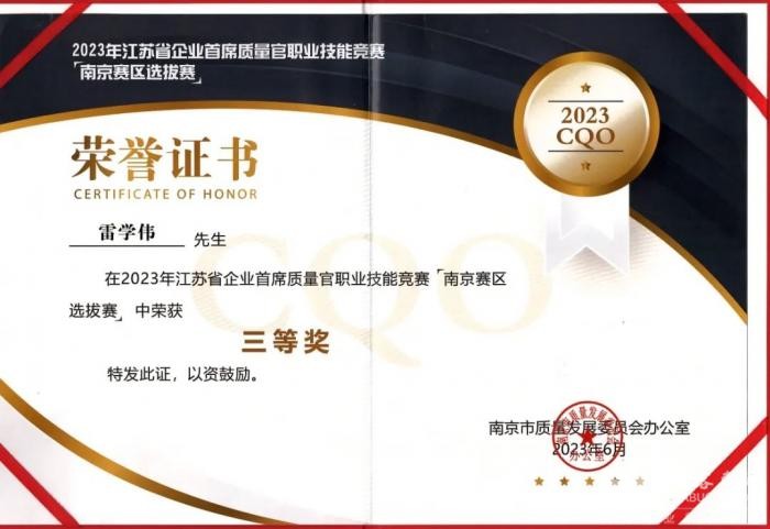 2023年6月,南京市质量发展委员会和南京市市场监督管理局联合举办了“2023年江苏省企业首席质量官职业技能竞赛南京赛区选拔赛”。开沃集团大客事业部首席质量官雷学伟、卡车事业部质量主管钱海峰代表溧水区参加了此次选拔赛。