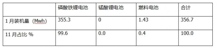 已经提前完成,加之目前地方财政较紧张,依靠政府财政购买新能源公交客车的计划被缩减,因此目前新能源客车需求动力不足。由此导致今年1月新能源客车动力电池装机市场在新能源汽车大盘中占比最小。