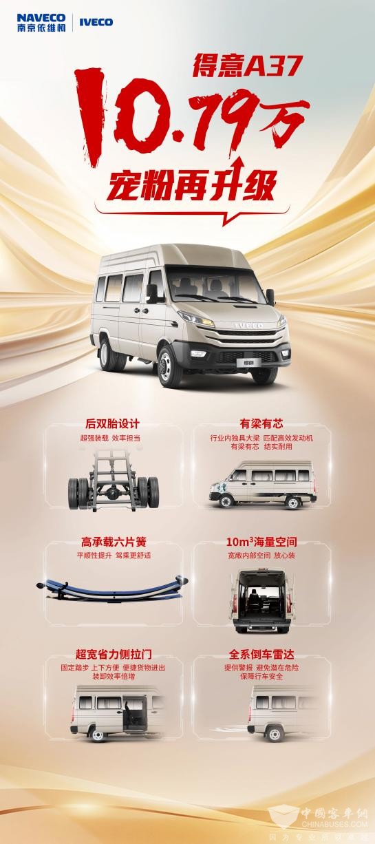 无论是何种生活方式,都离不了一台性能可靠、用途强大的车为生活增添助力。为了让更多用户开着依维柯奔赴对生活的热爱,南京依维柯打造春日礼遇,惊喜再升级,2年0息8万的购车福利让您购车更轻松;得意A37更是以10.79万元的售价展现出十足的诚意!赶紧购一款爱车,带上家人朋友,满载欢乐一起出游,去翻山,去悦己,去领略美好春光吧!