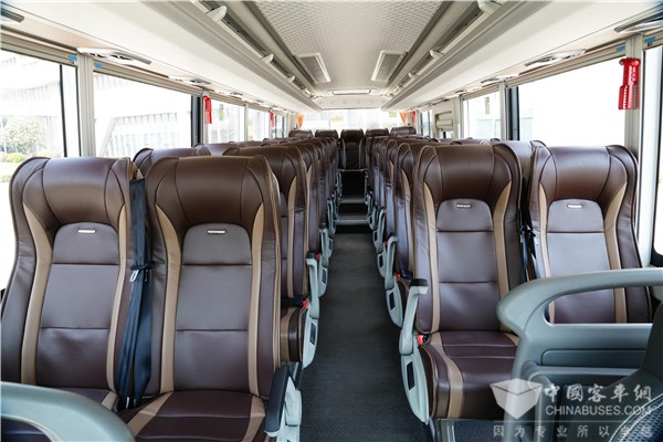 此次交付的N8高端客车,一体化车窗设计,自带大视野观景窗,即使走马观花,也能一睹芳华为快。整车秉持精致、高效、轻量、安全、舒适、人性化、“双M”的理念,将美学再度升华,采用全新设计语言,微笑前脸炯炯有神,车身线条行云流水,不仅配备“PM1.0级”第五代内环境康健系统,还具有极高的主被动安全性,让旅客一路舒心又安心。