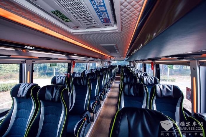 5.9米欧睿采用1+1座椅布置,有7-9座三种座位数选择;采用1+2座椅布置形式,最多可以布置16座。