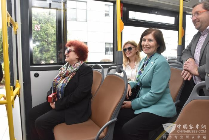 在参观展车环节,驻华使节还纷纷登上苏州金龙面对全球市场研发的新V系智慧客车,感受了现代化客车的舒适驾乘体验并频频点赞。格林纳达驻华大使马岩表示,很荣幸能来到海格,了解到更多关于产品、技术进步以及海格的未来规划。他还特意用汉语表示,在格林纳达目前只有苏州金龙的传统动力车型,这次参观苏州金龙感觉新能源车型非常好。
