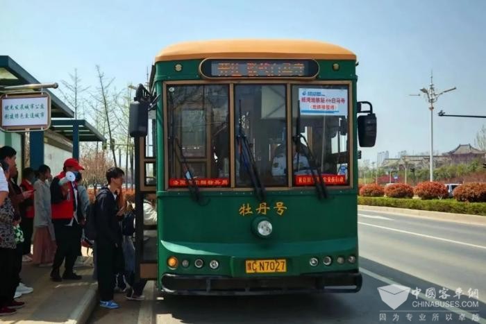 此次投入运营的“牡丹号”格力钛新能源仿古铛铛车,极具复古风格的外表,配备大视野全景观车窗,行驶在千年古都里观赏一路繁花,为游客带来穿越式的体验。