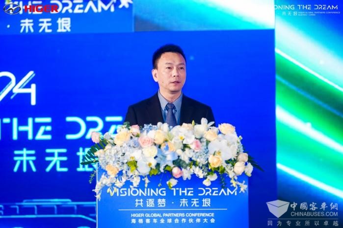 苏州金龙党委书记、董事长陈笃廉在大会上表示,在过去二十年的国际化征程中,苏州金龙与全球伙伴深度联动,业务版图扩展至全球130多个国家和地区,实现了国内外市场的相互促进。2023年海格客车出口额超5亿美元、占比达56%,首次超过国内市场。近年来,苏州金龙积极推进数字化转型和组织变革,提升管理精细化和生产智能化水平;积极实施战略重心向海外市场转移、链接造车新势力等措施,不断拓展发展空间。陈笃廉倡议合作伙伴们继续共享发展、拥抱变化,在强化技术协同创新、共同推进全球市场战略布局合作深化、持续提升售后服务质量和效率以及探索新商业模式等方面携手共进。