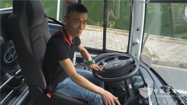 武汉富华旅游汽车服务有限公司计调经理胡猛试驾苏州金龙V8客车