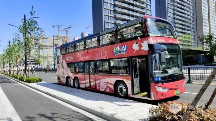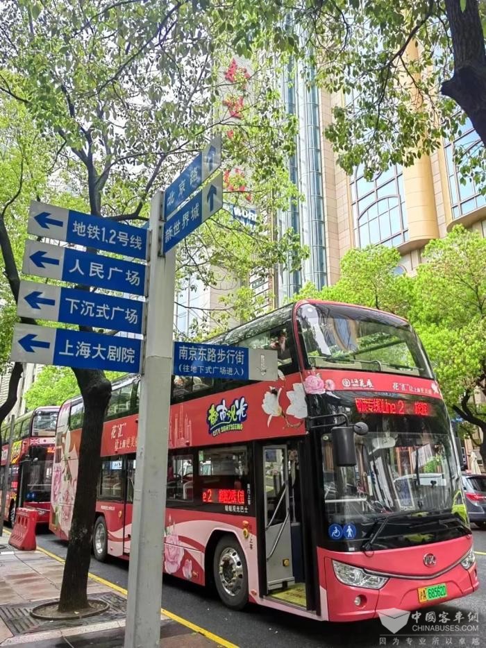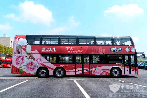 “赏花专线”将从上海市中心人民广场出发,串联起新天地-徐汇滨江-上海植物园等展区,以全新视角带领游客们尽情感受繁花似锦,尽享一场视觉盛宴。红色车身上描绘着花展相关元素,即便置身繁华街头,亦化作一道引人驻足的亮丽风景,能轻易成为夺人眼球的焦点。
