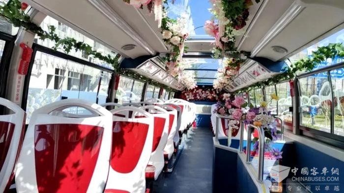 想一饱眼福的游客,不妨换一个角度欣赏视觉盛宴。乘坐由花展主办方与春秋集团合力推出的“花汇春秋”主题花车,感受期间限定的“赏花专线”,通过花车巡游的方式来一次别样的City walk。而担当花车运营重任的正是出自安凯客车旗下的双层观光巴士,不仅外观时尚华丽,内部设施也一应俱全,为游客们提供了舒适且独特的观光空间。