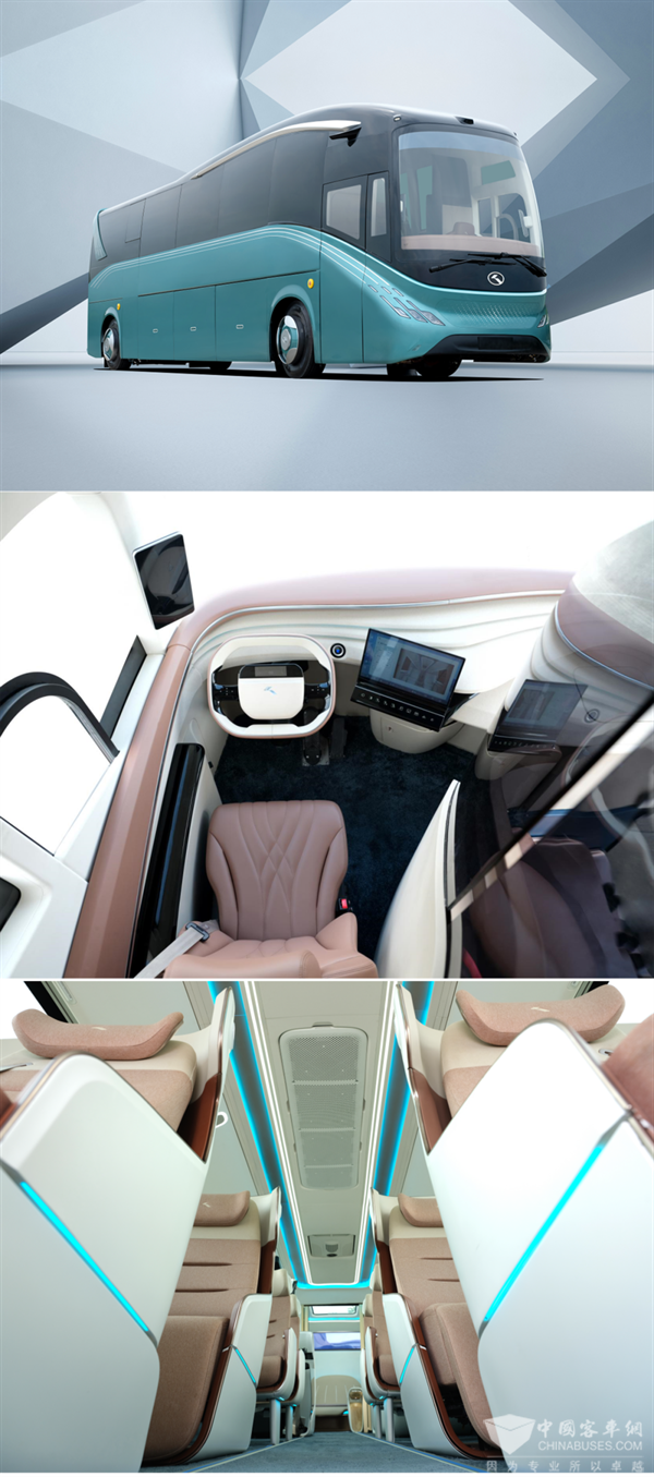 更具流线型的车身、优美的国风设计理念……金龙汽车此次展示的是全新超级出行方式——MC—MerryCombo。据介绍,该MC数智大巴采用九大超级技术,数智化是最大亮点,车内采用全舱智能化控制,拥有快速切换内饰模块的能力,为乘客打造多元化的移动空间,可实现场景组合变换,便捷地成为旅游用车、商务接待用车、米其林餐车等。