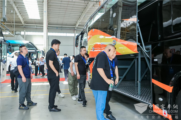 论坛议程后,与会嘉宾深入金龙汽车龙海新能源产业基地,实地参观了高端客车电泳、涂装、总装生产线,详细了解项目规划、投产车型、产能等各方面情况。包括领航者、凯歌、锦程、凯旋以及L4级自动驾驶客车驰睿在内的金旅全系旅团精品车型系数亮相,以“数字化、智能化、高品质”三大关键词诠释金旅客车对旅游出行“新质生产力”的充分理解。