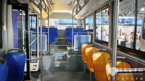 BJ6859采用承载式结构,轻盈且坚固,有效提升了能效和安全性。车辆低入口、大空间的设计,配合右侧前、中两个内摆乘客门,使得车内通道宽敞,进一步提升通过性,为乘客带来更加便捷舒适的上下车体验。同时,车内增设颜色鲜明的爱心座椅,采用温暖人心的橙色作为主色调,活泼而且识别度较高,更加方便残障人士、老年人等群体出行,体现社会公益属性。