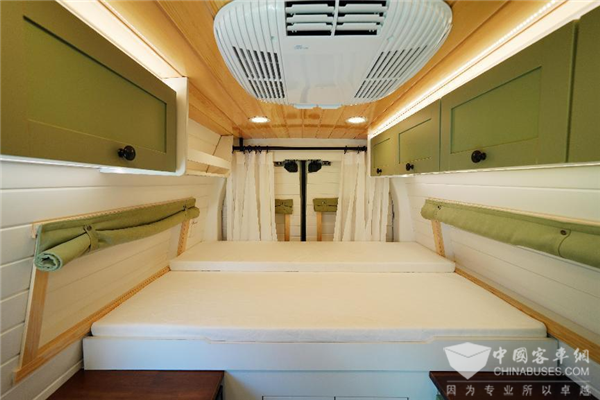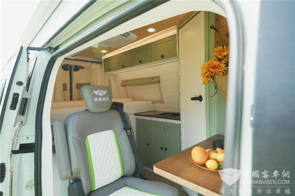 除了强大的越野性能,赛德星辰PRO在舒适性方面也表现出色。以原木色和白色桑拿板为基调,营造出一种自然、简约而高雅的氛围。豆沙绿与白色相搭配的家具,色彩柔和而协调,既增添了空间的活力,又不失温馨感。